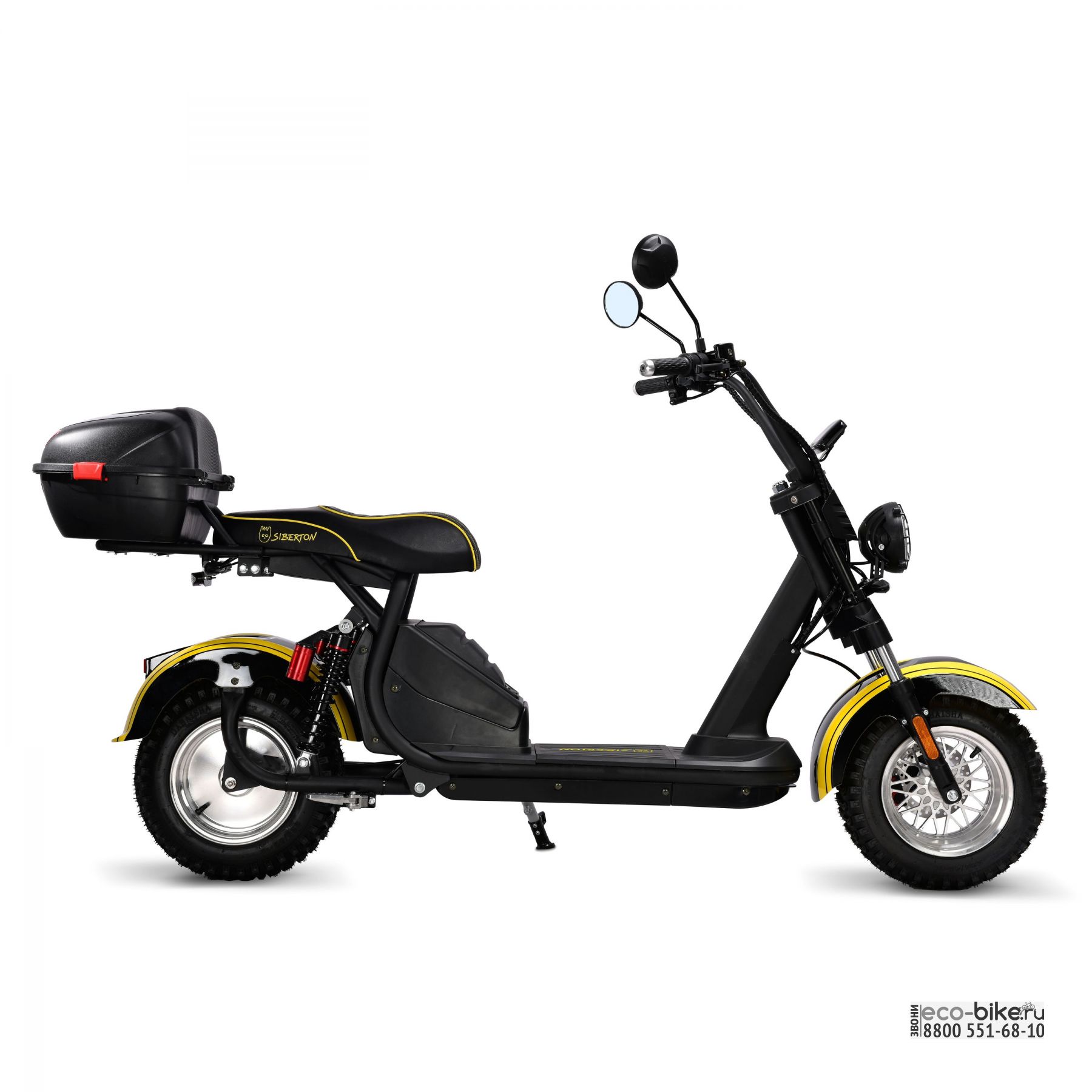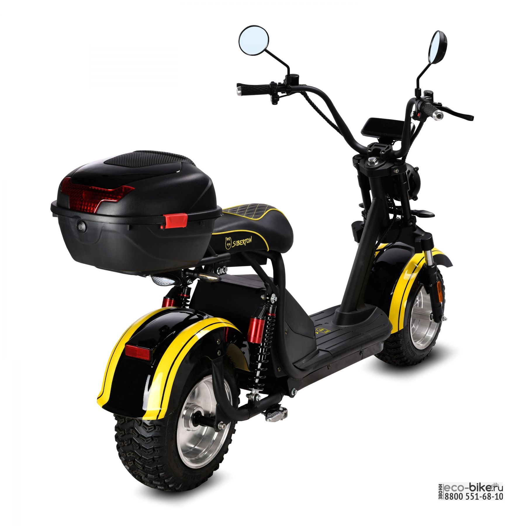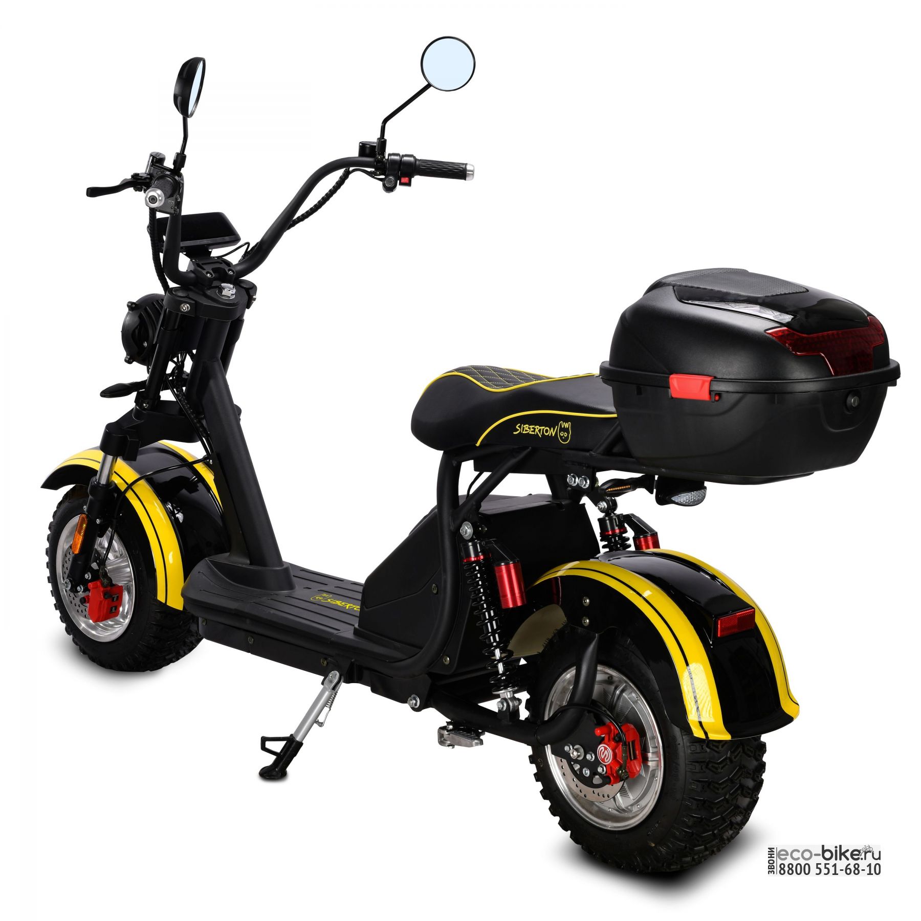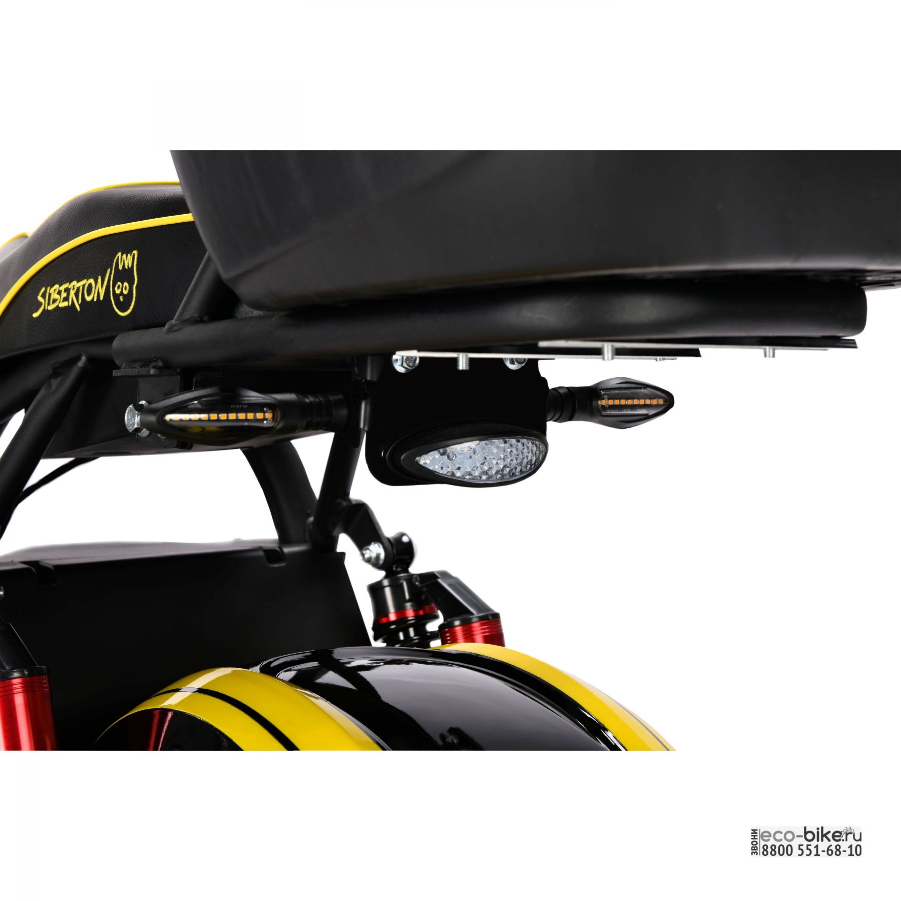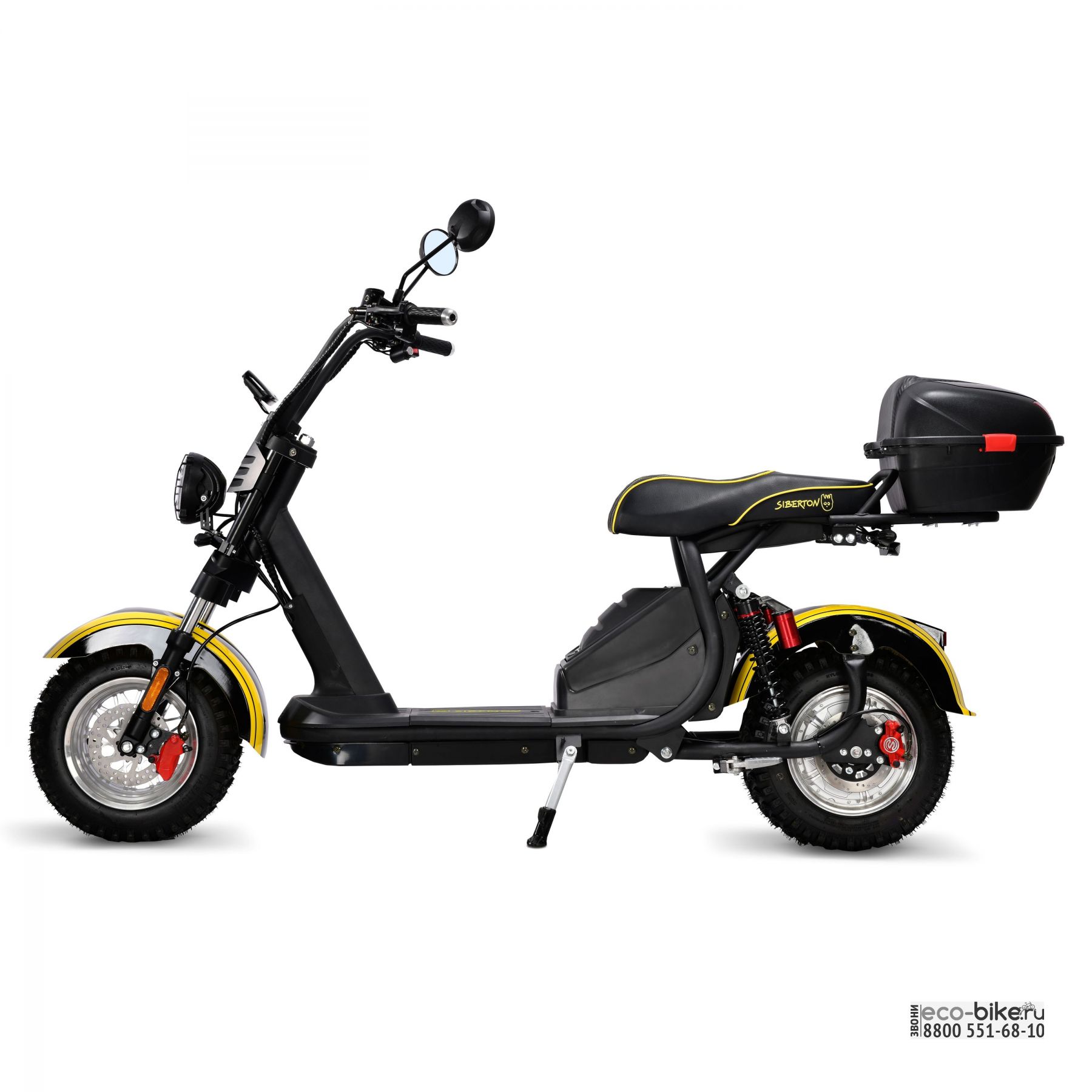 Электроскутер SIBERTON PRO 2500W - идеальный по показателям агрегат. Мощность мотор-колеса с мощностью 2500 В и максимальная скорость разгона до 61км\ч для быстрой и экологичной езды без автомобильных пробок. Емкая батарея в 21 Ач позволяет скутеру преодолевать расстояния до 60 километров без дополнительной подзарядки для длительных прогулок без страха внезапного разряда. Аккумулятор защищён от перезаряда и перегрузки. Широкая подножка и прочная конструкция позволяют скутеру выдерживать нагрузку до 260 килограмм что дарит возможность использовать электроскутер SIBERTON PRO 2500W людям разной комплекции, роста и возраста. Имеет удобное управление и переключатель передач, расположенный на руле. Оборудован двойным сиденьем для перевозки пассажиров.